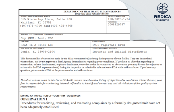 Heat In A Click LLC - Form 483, 2025-01-24