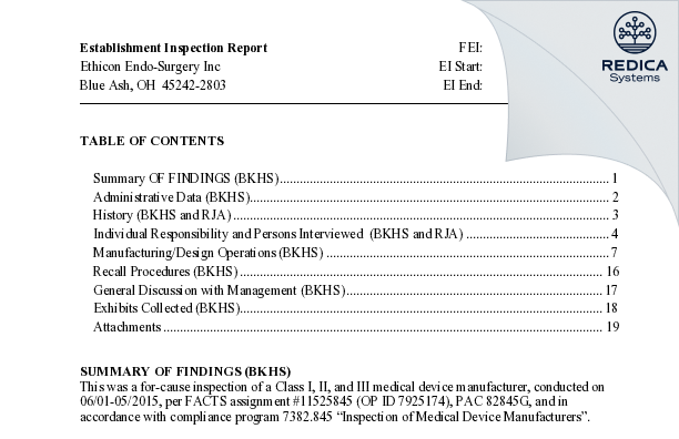 Ethicon Endo-Surgery Inc - EIR, 2015-06-05