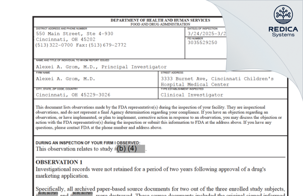 Alexei A. Grom, M.D. - Form 483, 2025-03-26