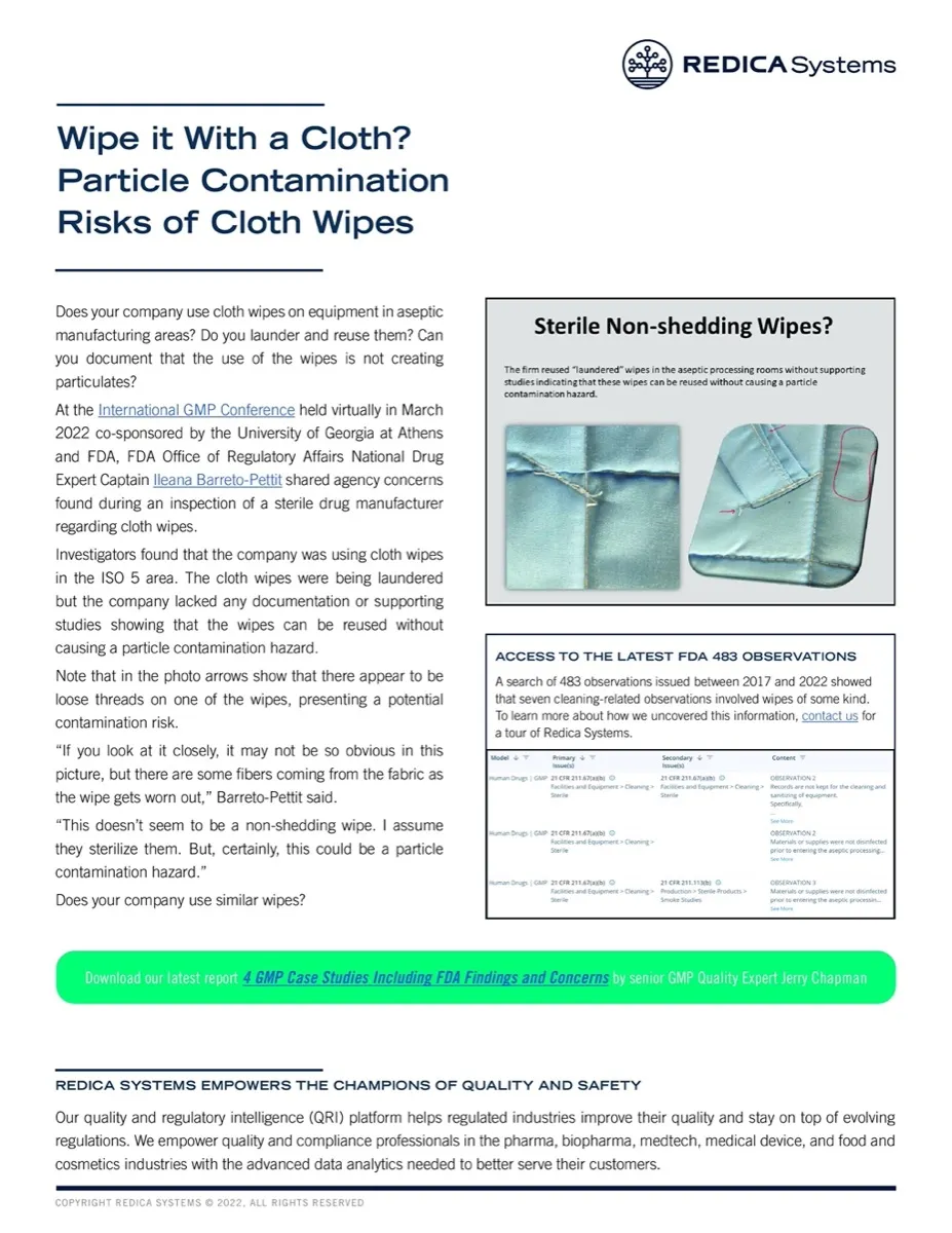Report – Wipe it With a Cloth? Particle Contamination Risks of Cloth Wipes